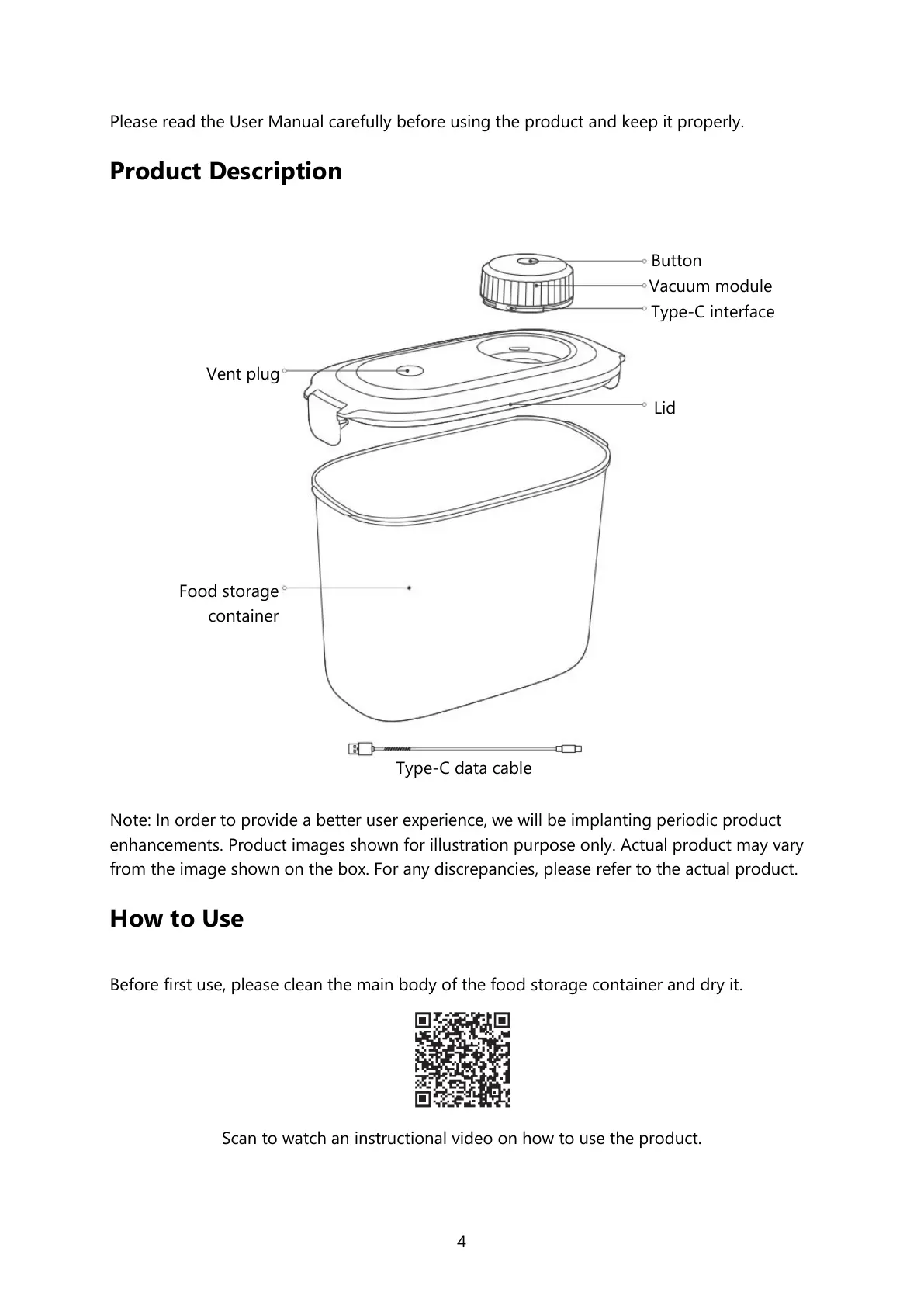 Before first use, please clean the main body of the food storage container and dry it.