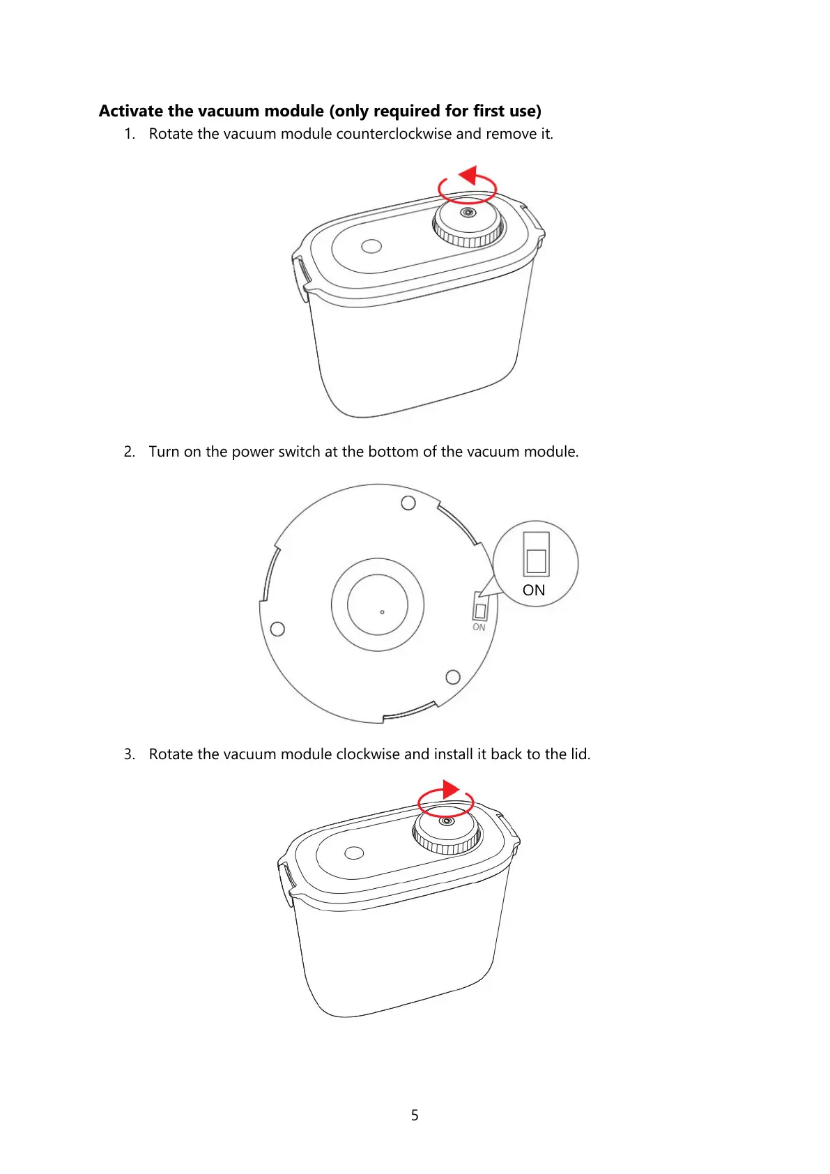3. Rotate the vacuum module clockwise and install it back to the lid.