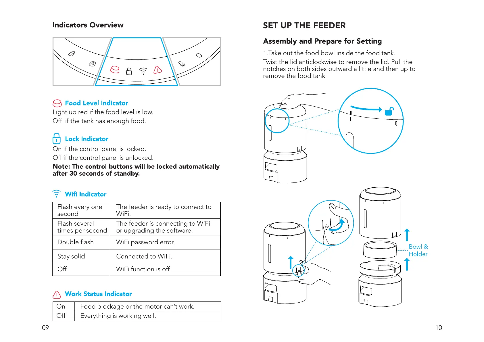 Petlibro PLAF103 - Indicators Overview; Setting Up the Feeder; Assembly and Preparation
