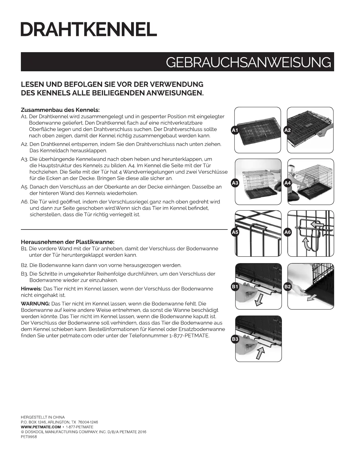 nden Sie unter petmate.com oder unter der Telefonnummer 1-877-PETMATE.