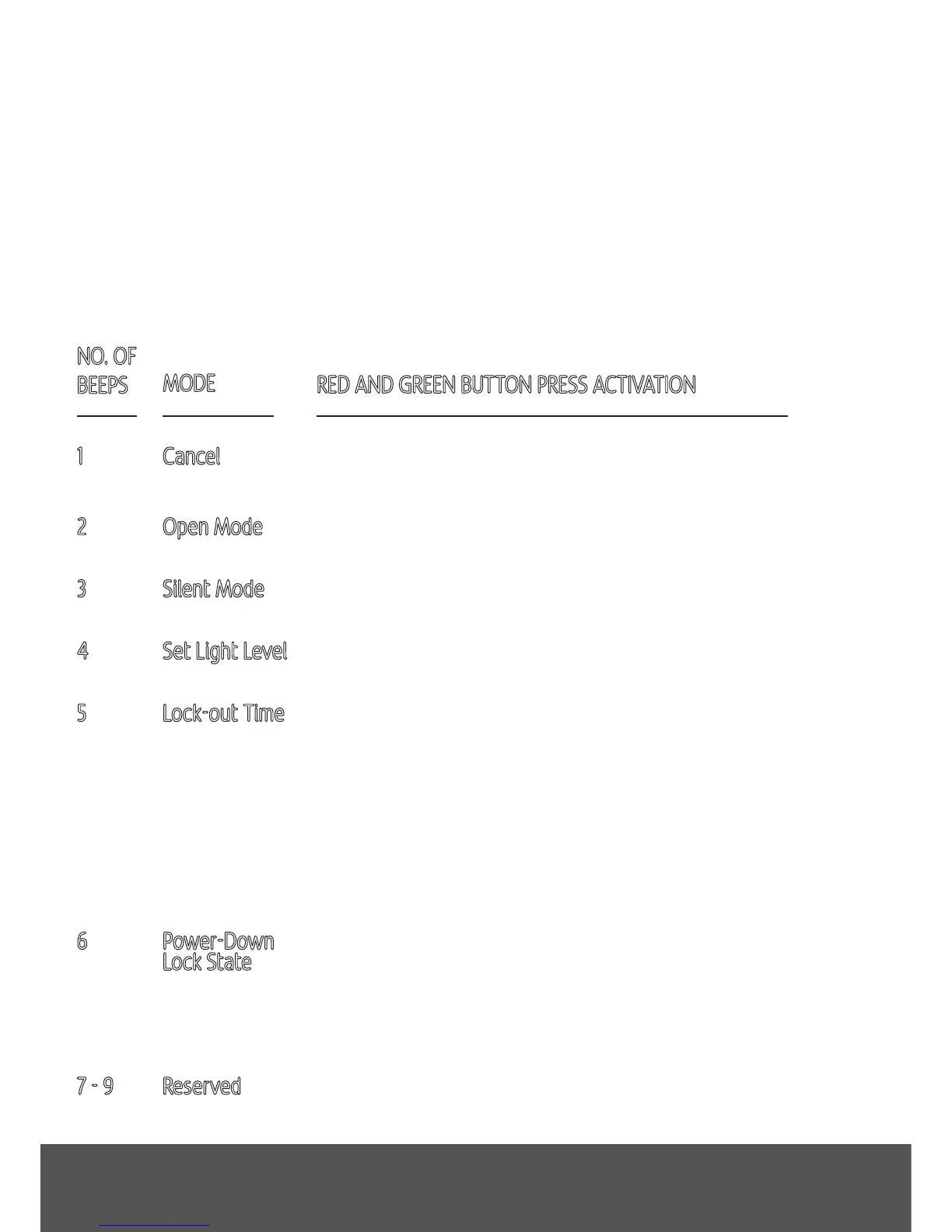 current mode is indicated by a number of beeps. When you are in the mode you