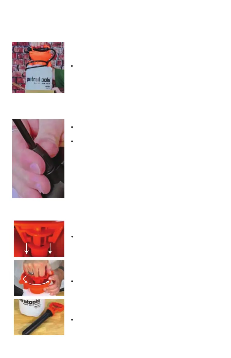 Lower the sprayer handle into the slots at the base of the