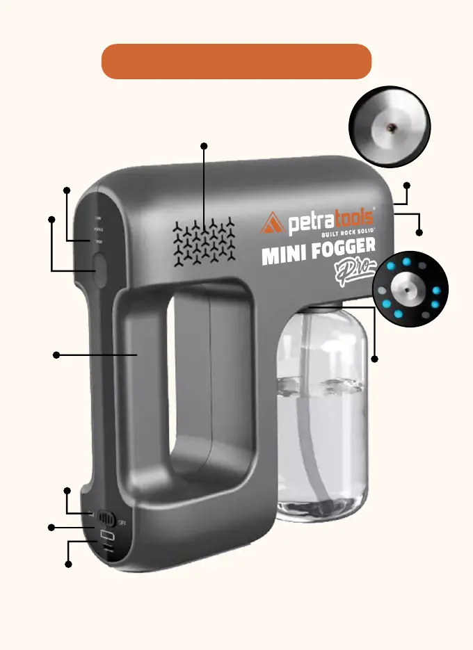 PetraTools Mini Fogger Pro - Product Specifications; Component Identification