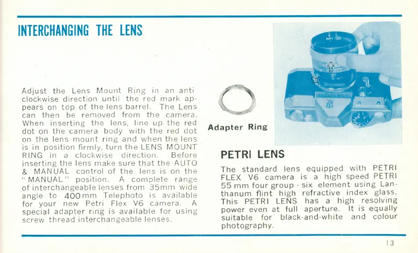 Petri? V6 - INTERCHANGING THE LENS
