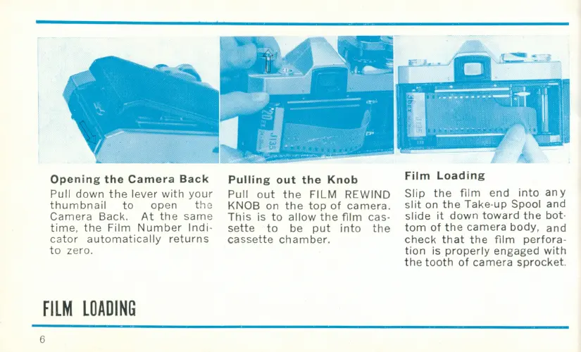 Petri? V6 - FILM LOADING; Opening the Camera Back; Pulling out the Knob; Film Loading Procedure