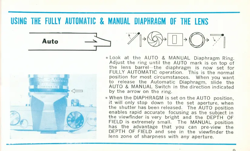 Petri? V6 - USING THE FULLY AUTOMATIC & MANUAL DIAPHRAGM OF THE LENS
