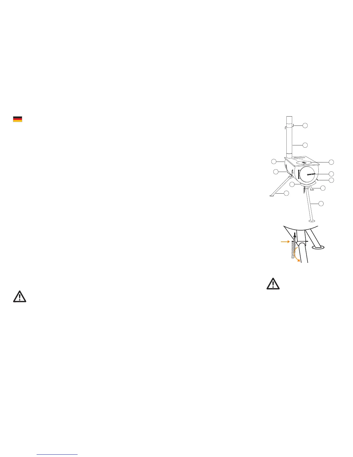 • Achtung! Der Zeltofen mit all seinen Teilen
