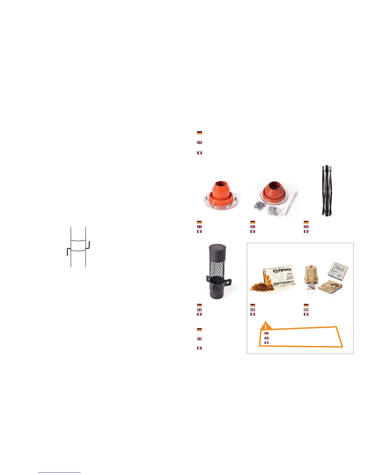 for tent, pent roof and tipi. Other accessories: Spark arrester and appropriate transport bag.