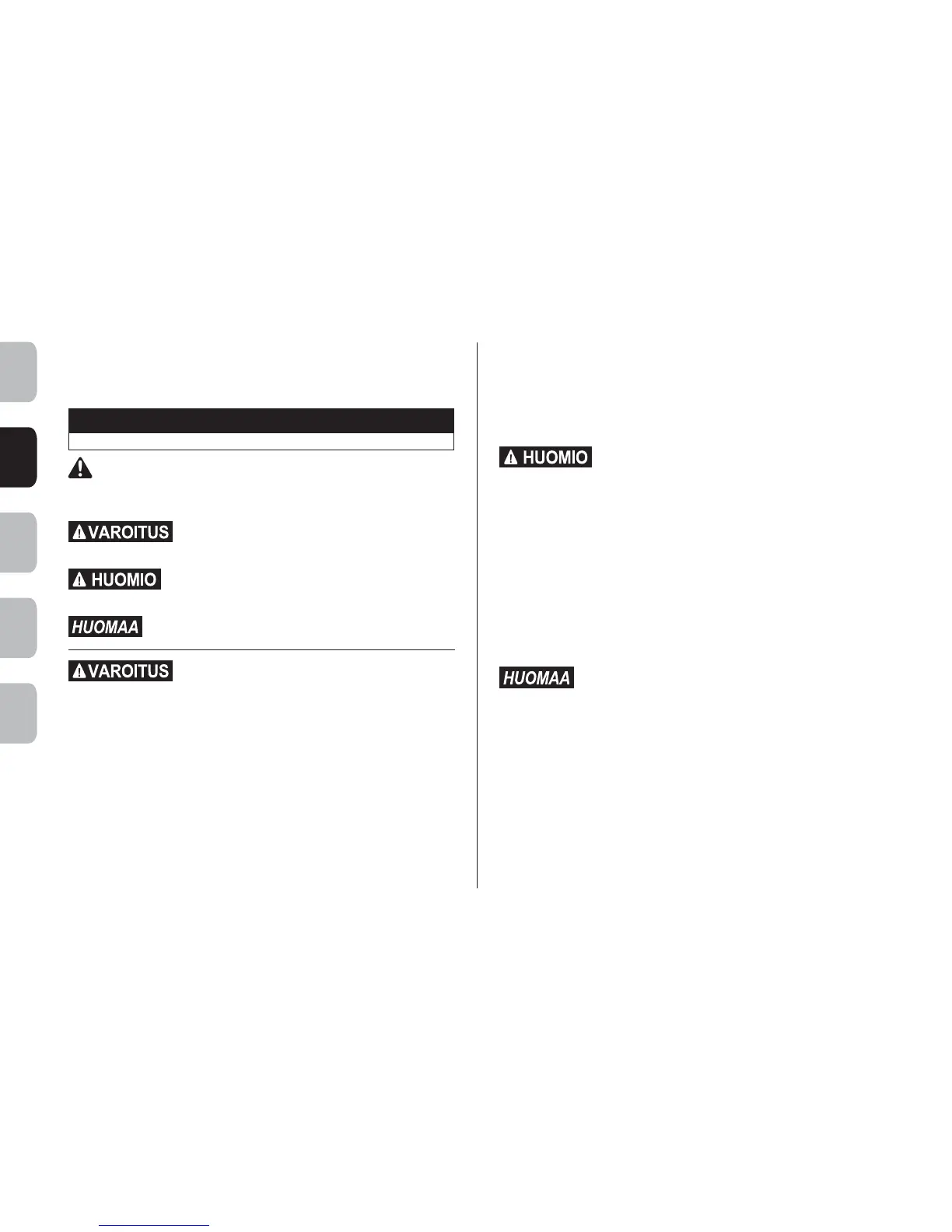 • Sähkötyökalut. Vakava vammautumisriski: noudata kaikkia