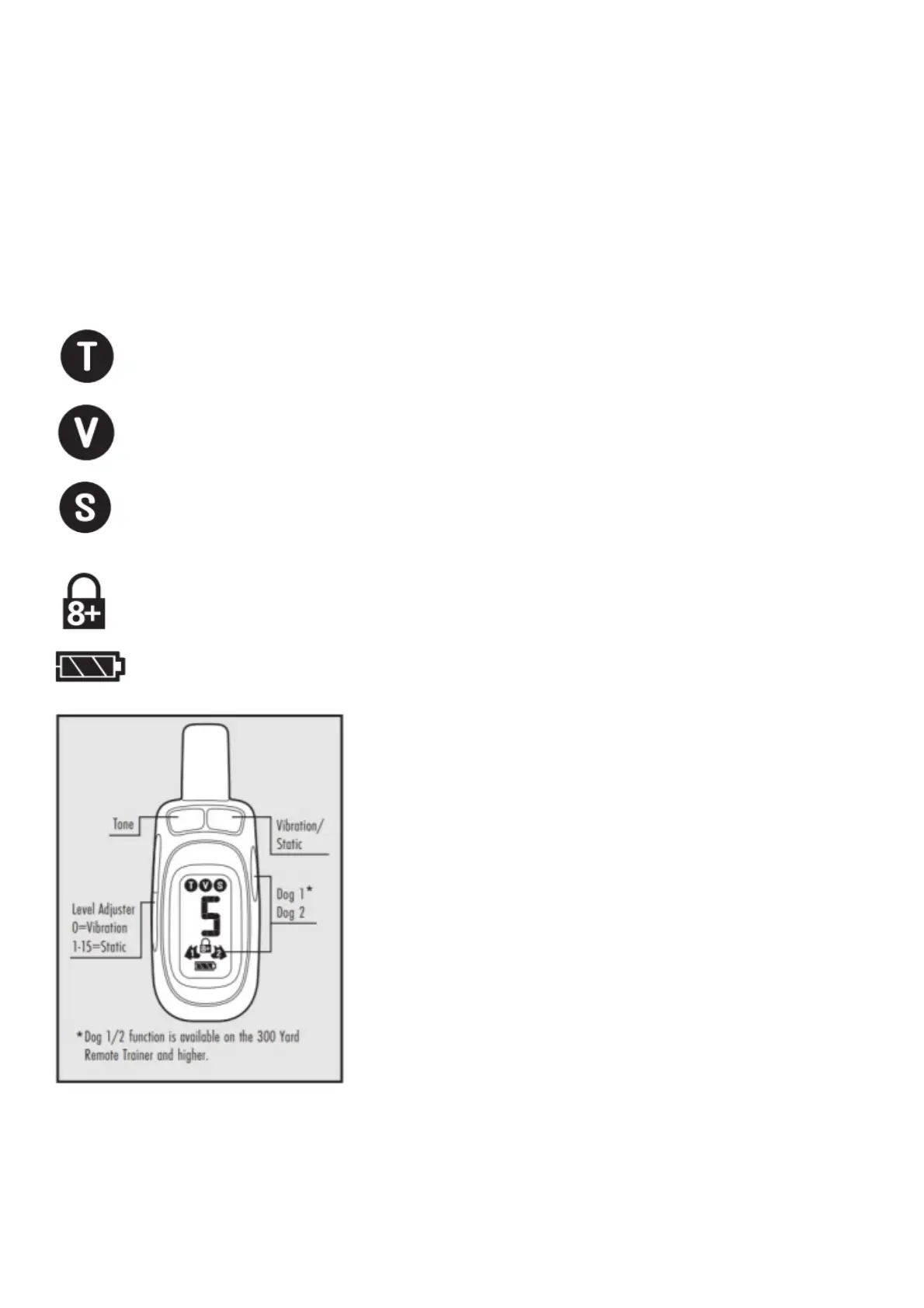 Static Symbol: Delivers up to 15 levels of static stimulation to the collar that can be adjusted with the side