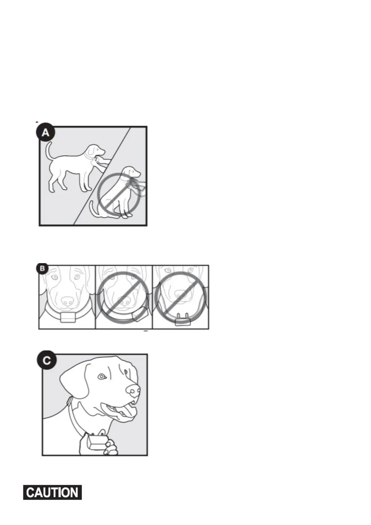1. Start with the collar turned off and your dog standing comfortably, not sitting (A).