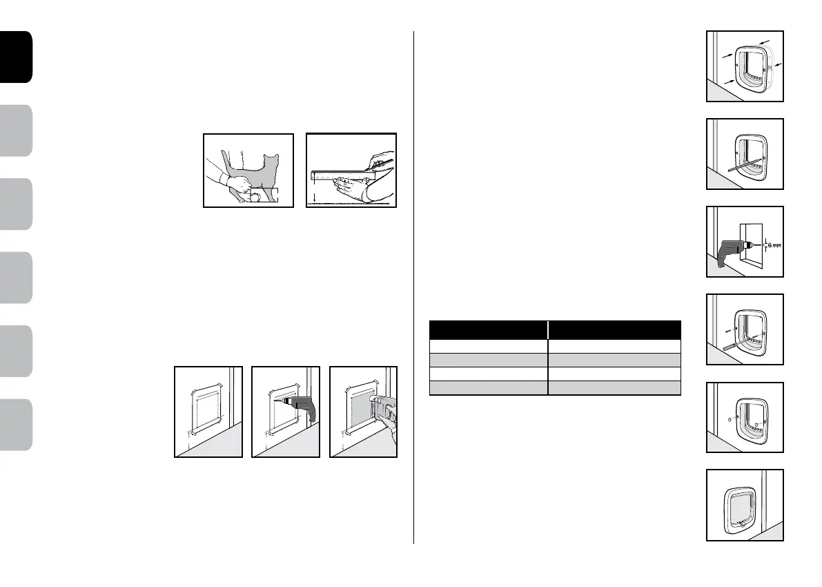 6. Remove the cat flap and drill the screw holes with a