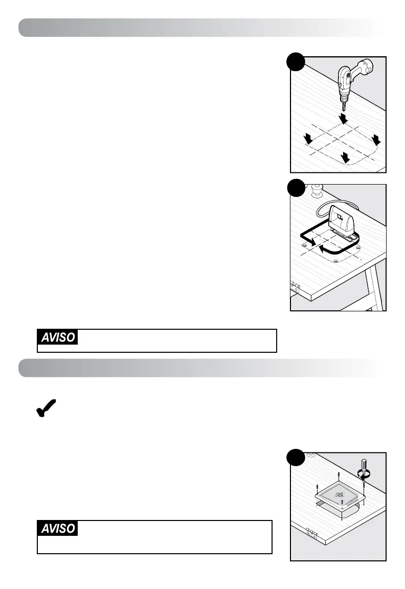 Perfore orificios de 13 mm (½”) en los ángulos interiores de la plantilla