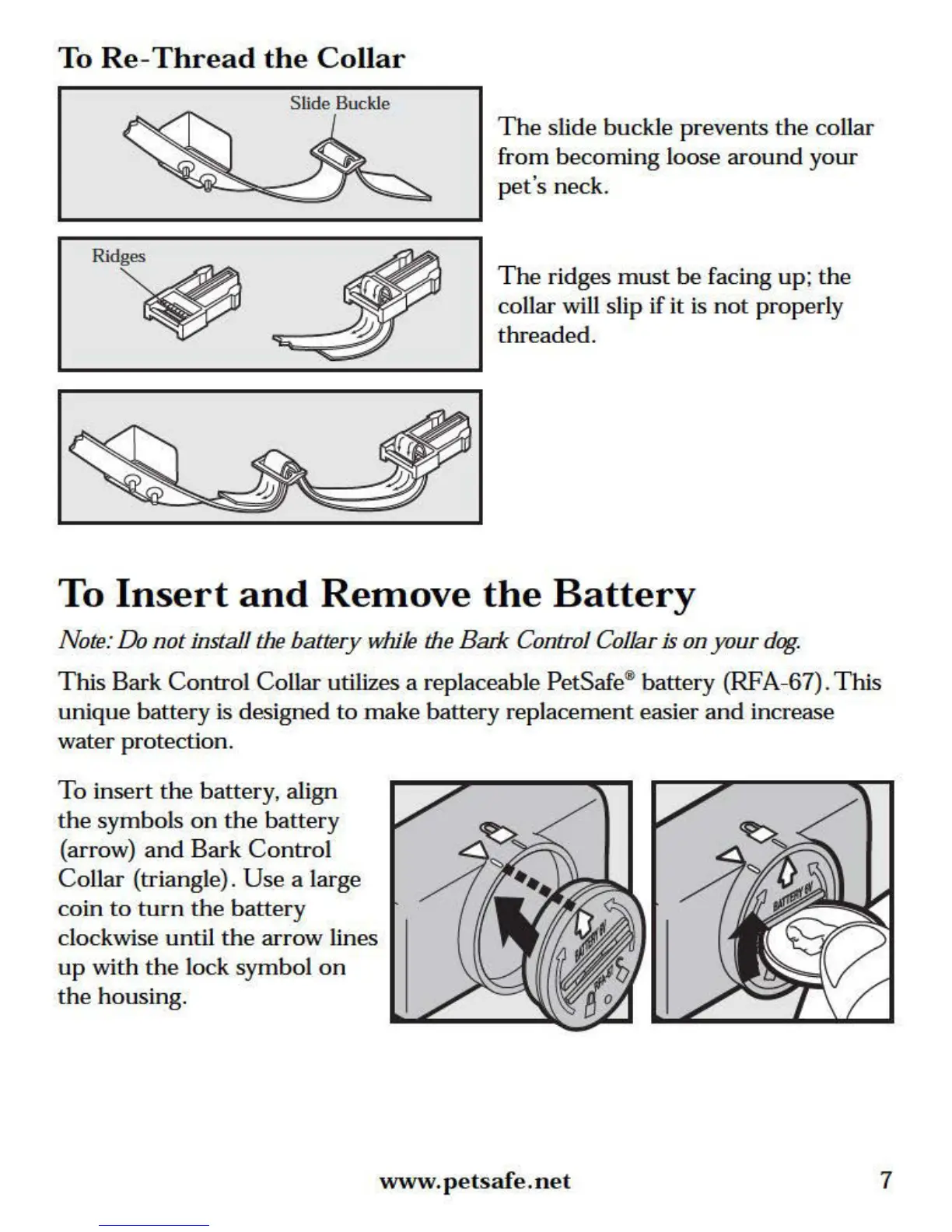 Petsafe Deluxe - To Re-Thread the Collar; To Insert and Remove the Battery