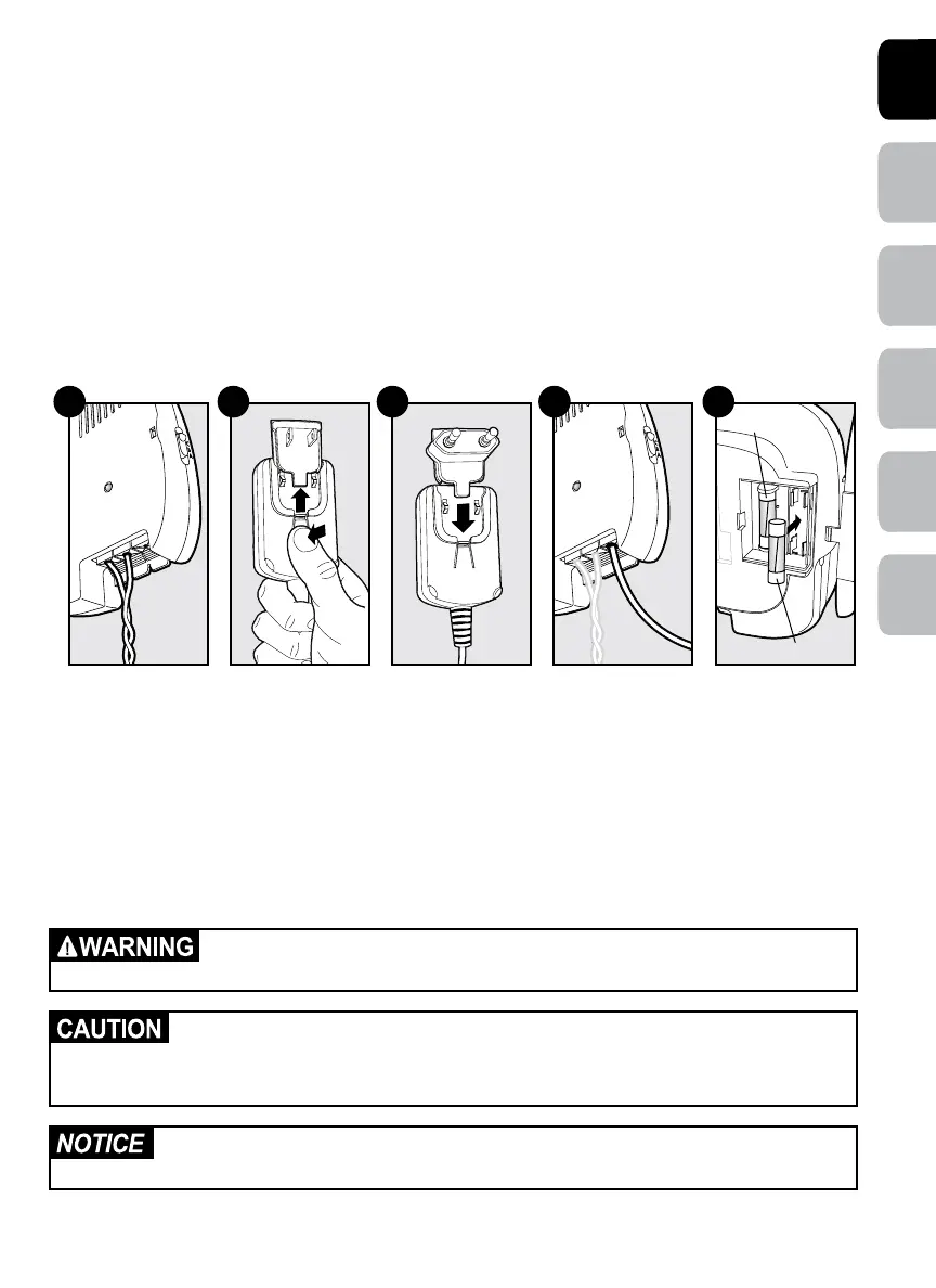a. Push in the tab on the power adaptor and remove the plug by sliding it off as shown (6B).