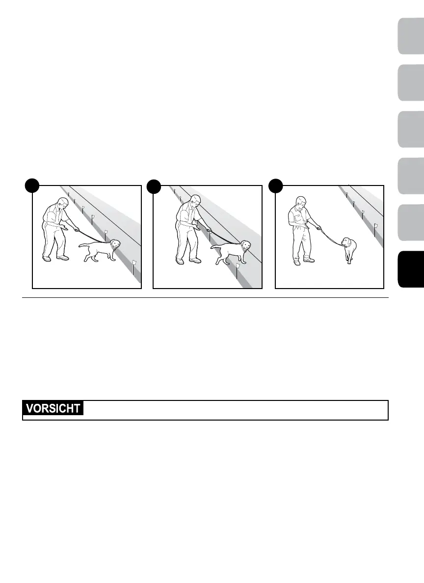 3. Gehen Sie unter voller Kontrolle Ihres Haustiers an der Leine an den Begrenzungsfähnchen vorbei (12B). Lassen