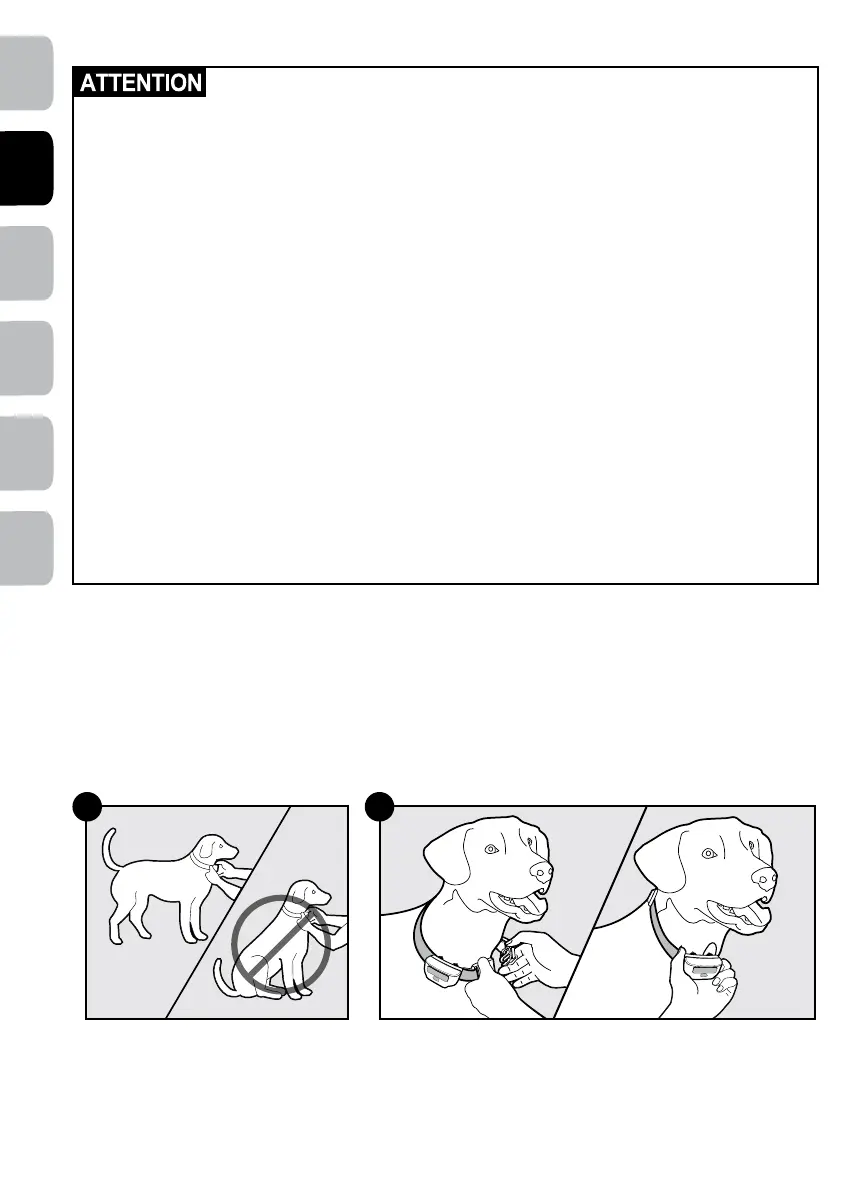 • N’attachez jamais de laisse a un collier muni de contacteurs. Cela exercerait une