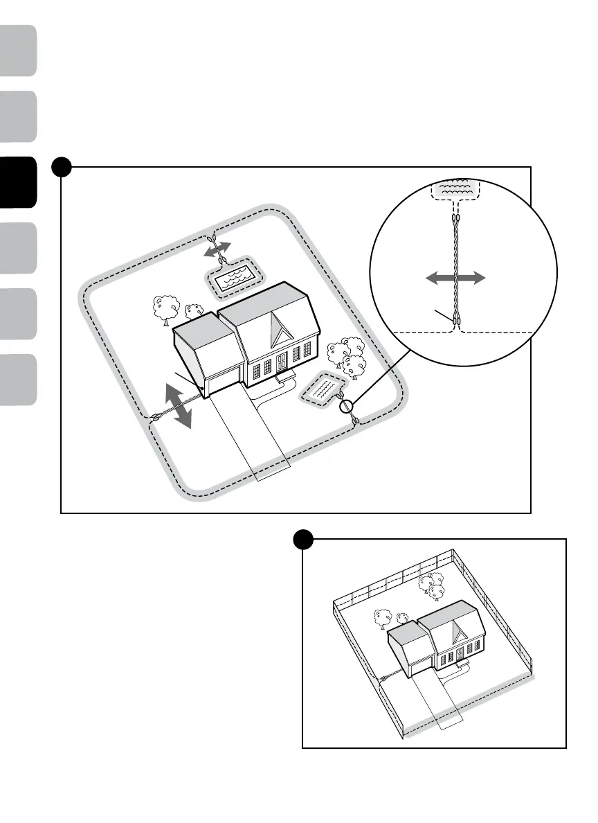 Met indeling met één enkele lus begint de grensdraad bij de omheiningszender, gaat de tuin in en gaat helemaal om