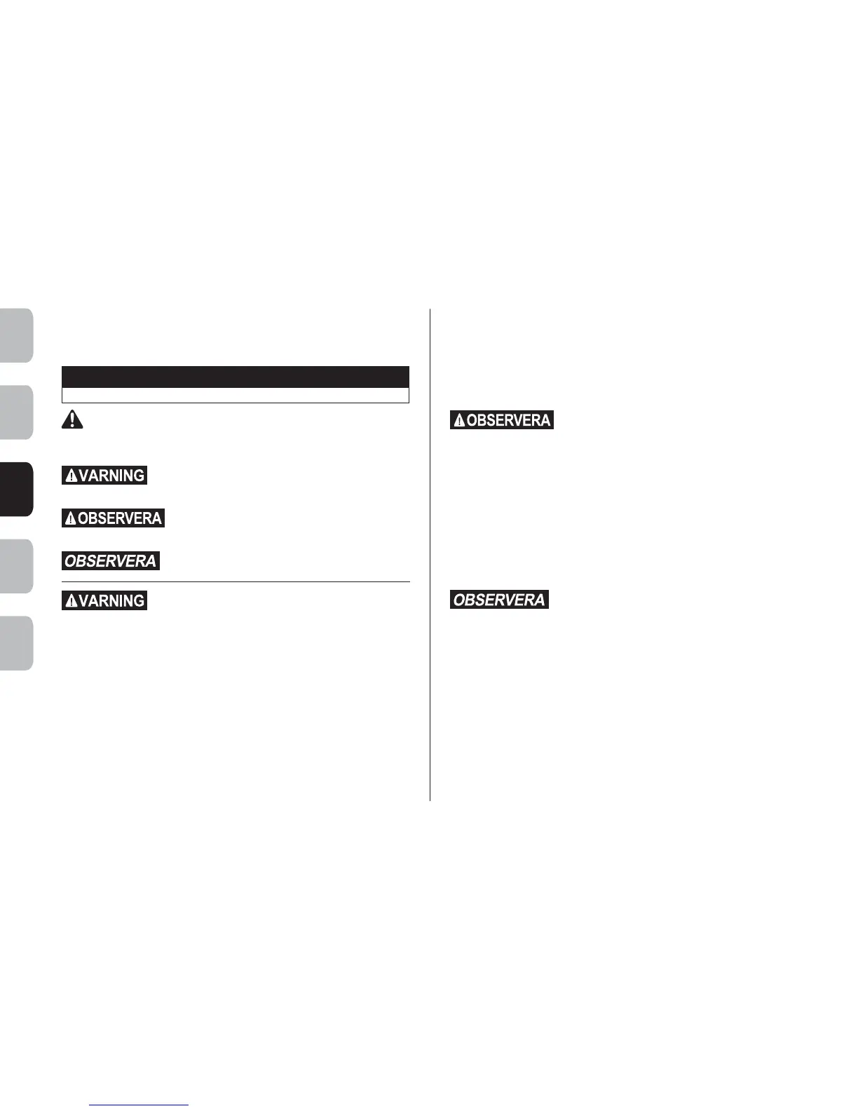 • Motordrivna verktyg. Risk för allvarlig skada; följ samtliga