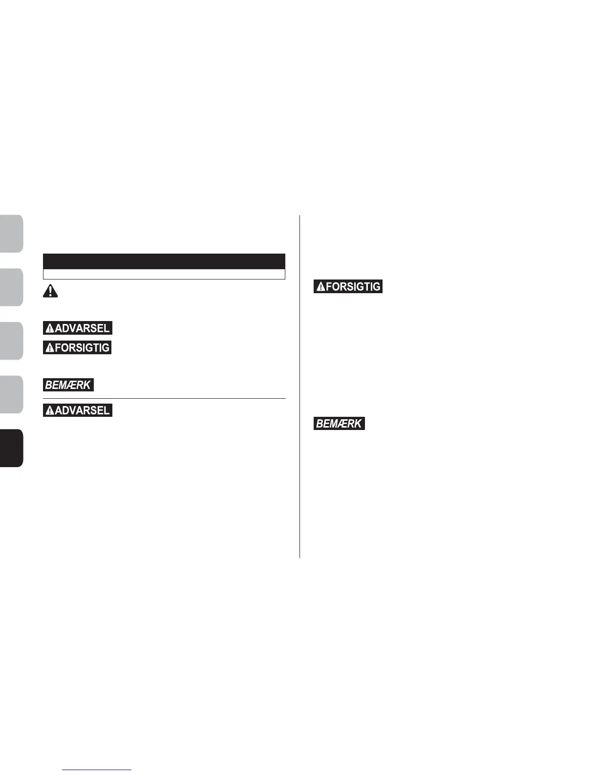 Forklaring af advarselsord og symboler, der anvendes i vejledningen