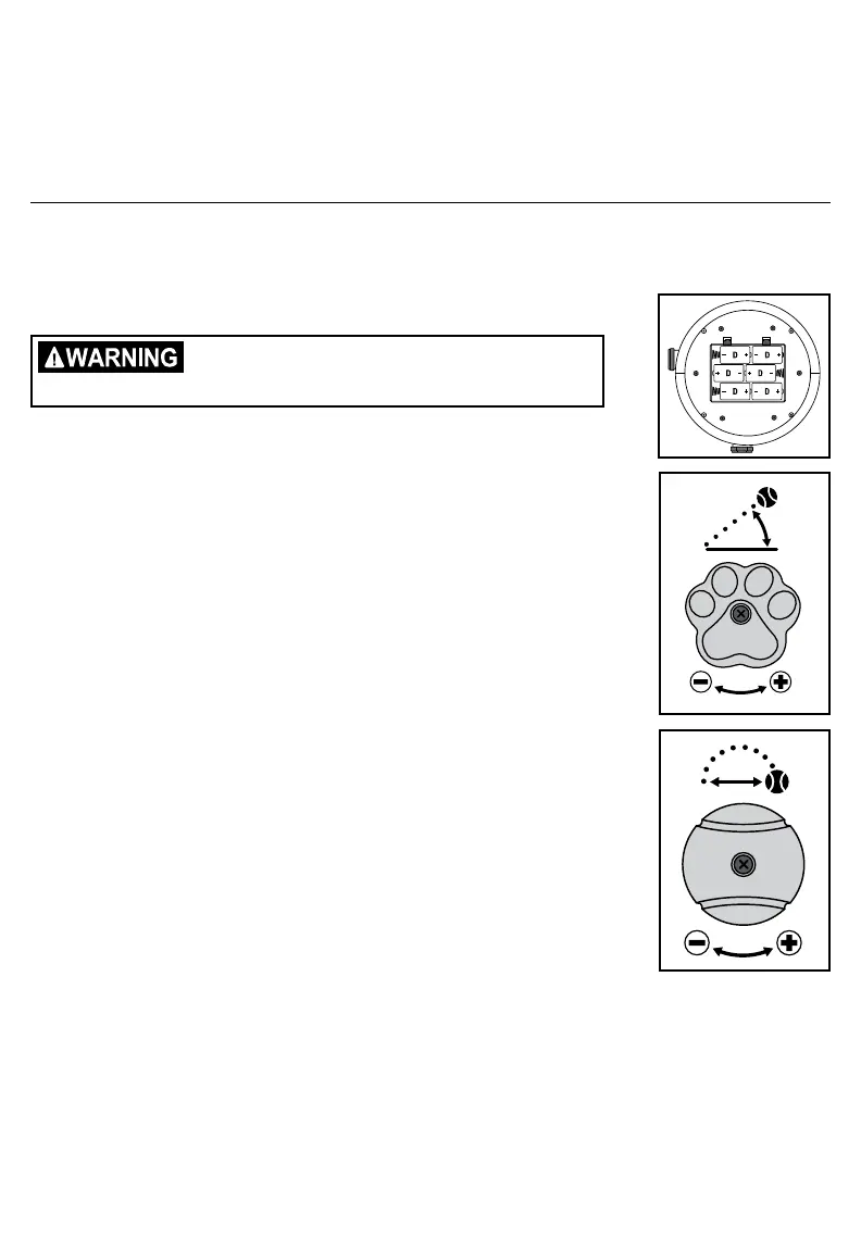to 45 degrees. To have the ball launched very high, turn the Paw Knob all the