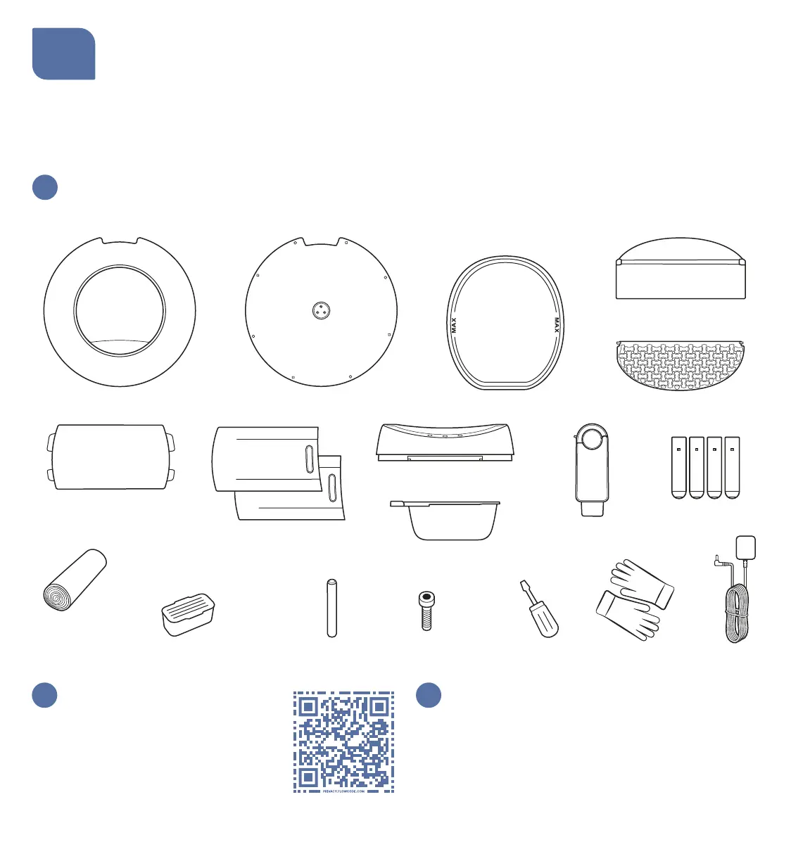Ta ut kattlådan ur förpackningen och kontrollera att alla delar nedan