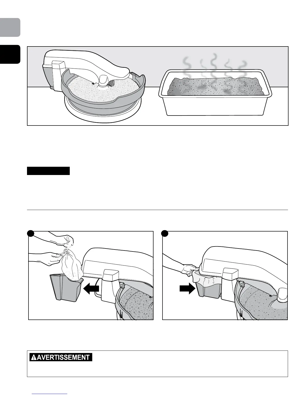 1. Retirez la corbeille à déchets de la boîte à litière. Si