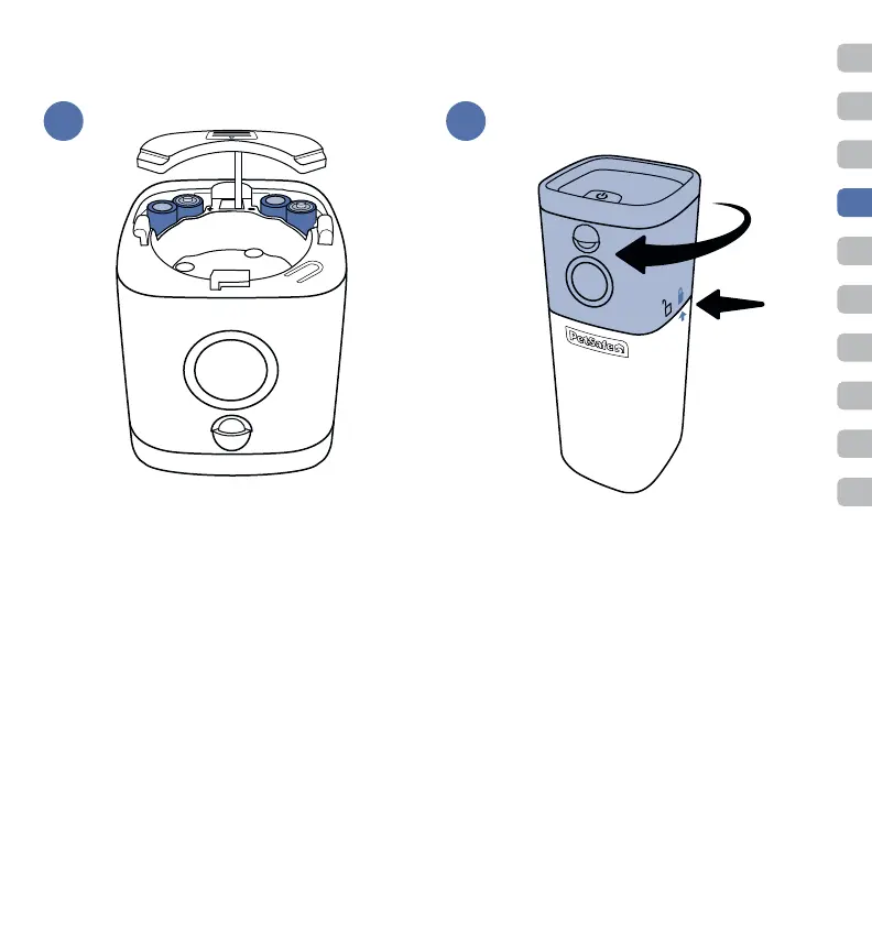 batteria, inserisci le due linguette nella