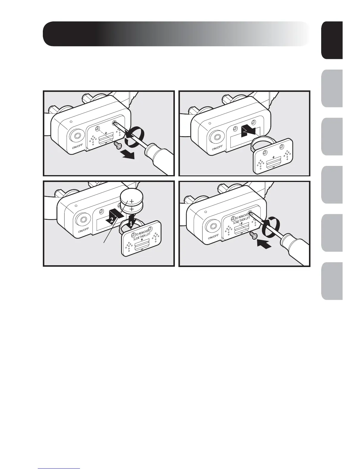 are ush with the Battery Lid. Replacement batteries (3-volt, CR2032)