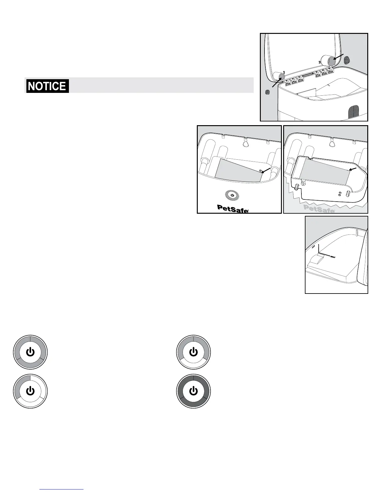 When turning on the Treat Dispenser, the LED surrounding the on/off button will indicate the battery