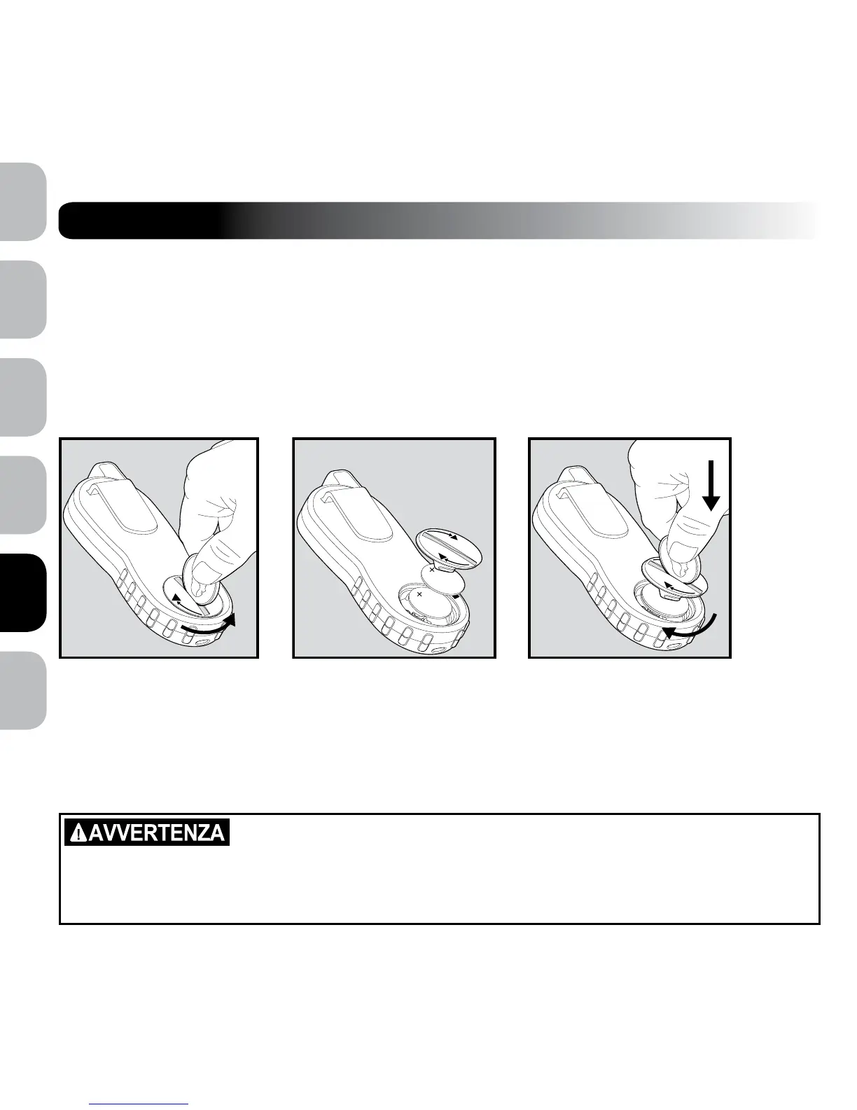 1. Per rimuovere il coperchio della batteria, usare una moneta e girarlo in senso antiorario finché il triangolo