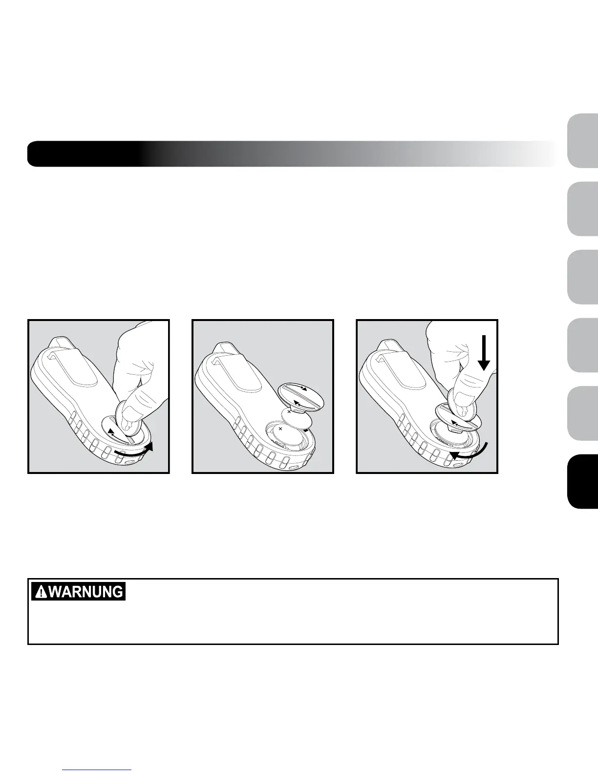 1. Zum Austauschen der Batterie eine Münze verwenden, um die Batteriefachabdeckung gegen den Uhrzeigersinn