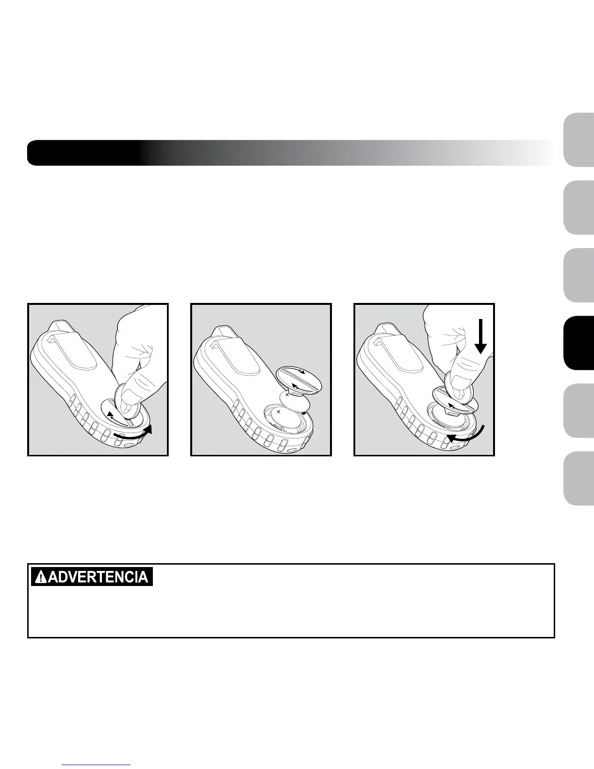 1. Para extraerla, utilice una moneda y gire la tapa de la pila a la izquierda hasta que el triángulo derecho se