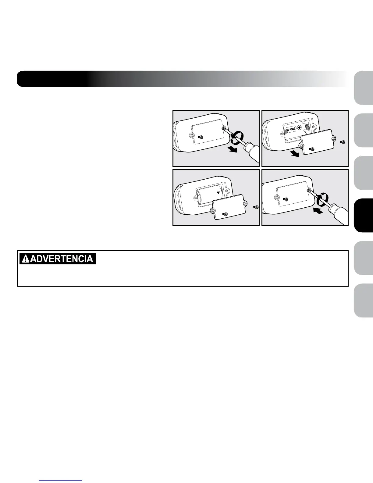 2. Instale una (1) pila (CR2) de 3 voltios como