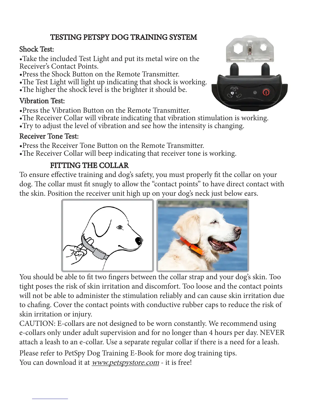 dog. e collar must t snugly to allow the “contact points” to have direct contact with
