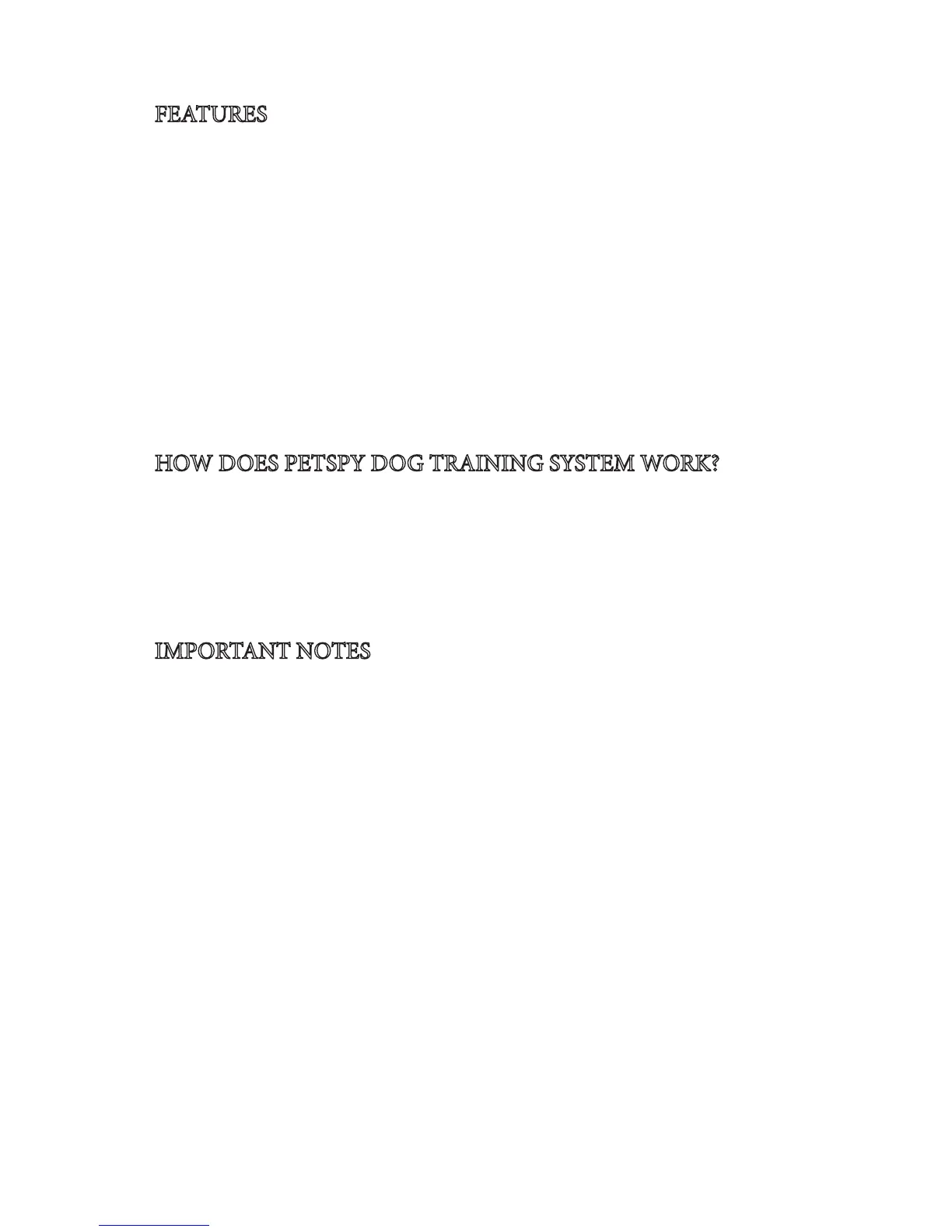 PetSpy M86-2 - Features; How Does PetSpy Dog Training System Work?; Important Notes