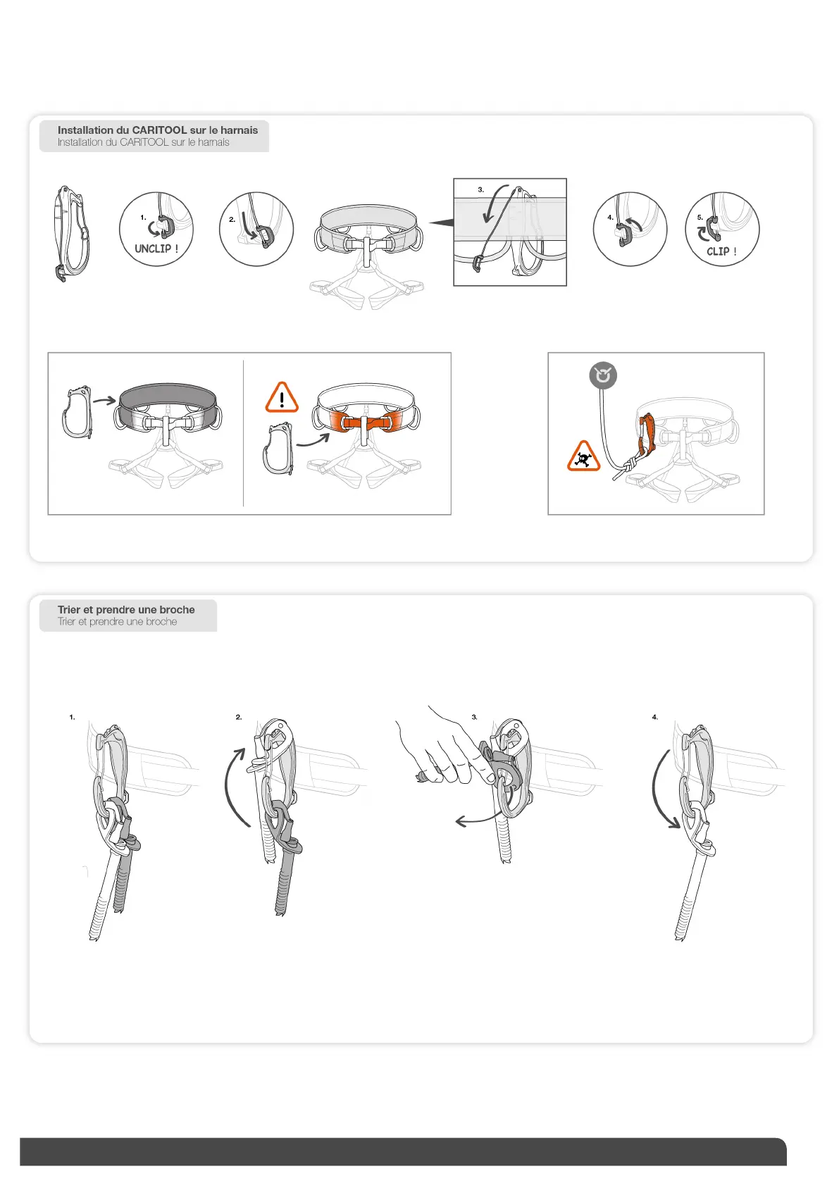 Petzl CARITOOL EVO - Installation and Usage; Installing CARITOOL on Harness; Picking Up and Clipping a Carabiner