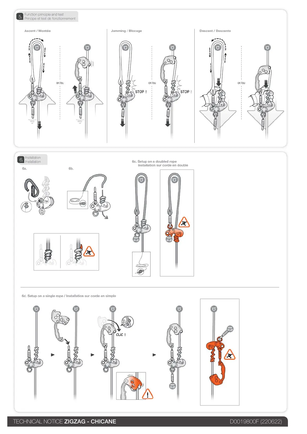 Petzl CHICANE - Function Principle, Testing, and Installation; Function Principle and Test; Installation on Rope