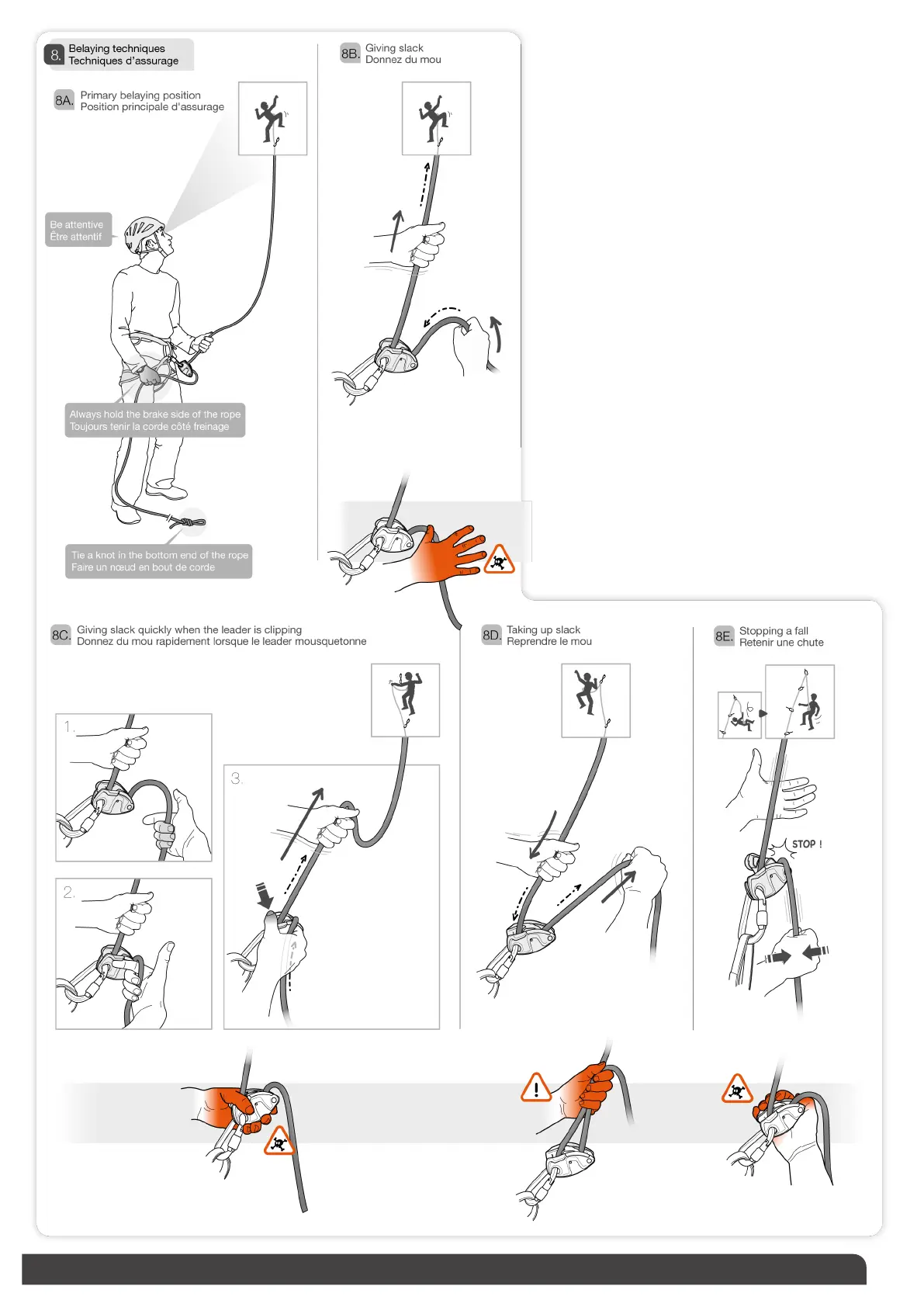 Petzl GRIGRI+ - Belaying Techniques; Primary Belaying Position; Giving Slack; Stopping a Fall