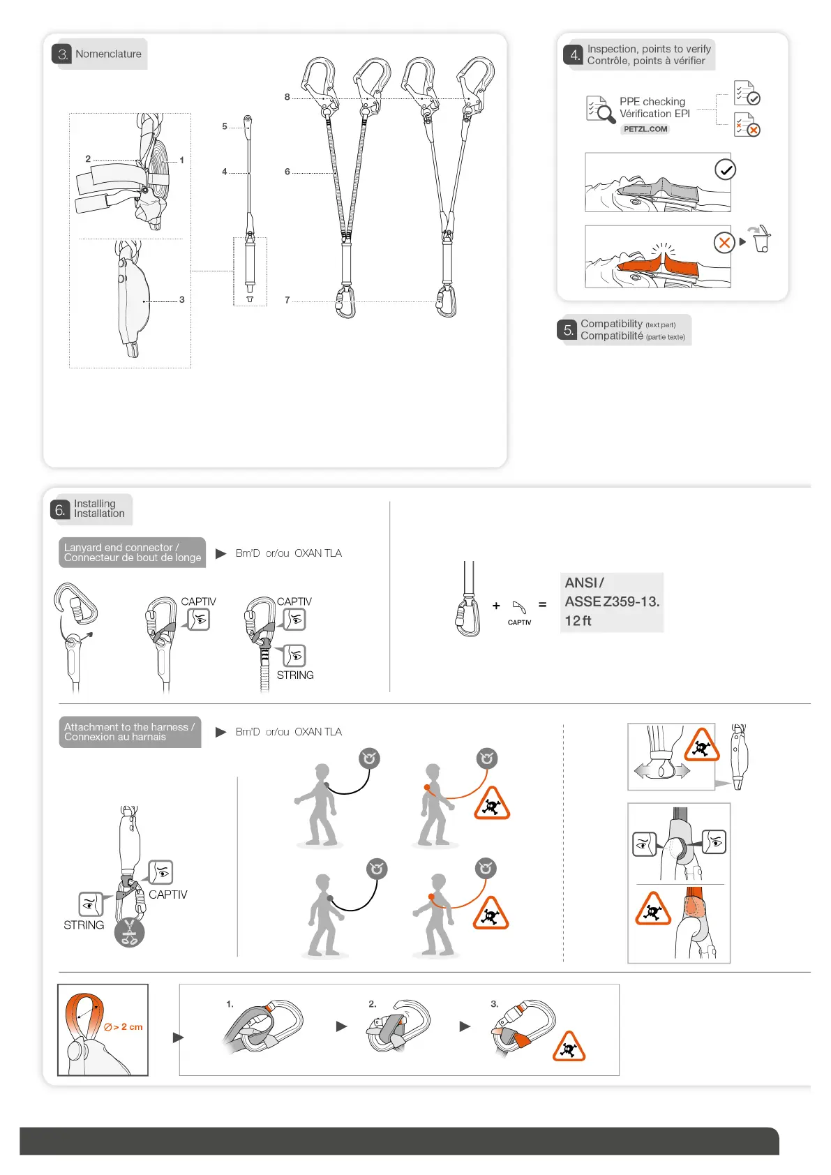 Petzl Grillon - 4. Inspection, Points to Verify; Pre-use and During-use Checks; 5. Compatibility; System Component Compatibility