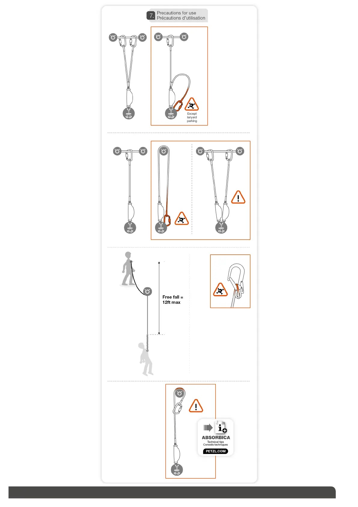 Petzl Grillon - 7. Precautions for Use; Fall Height and Temperature Limits
