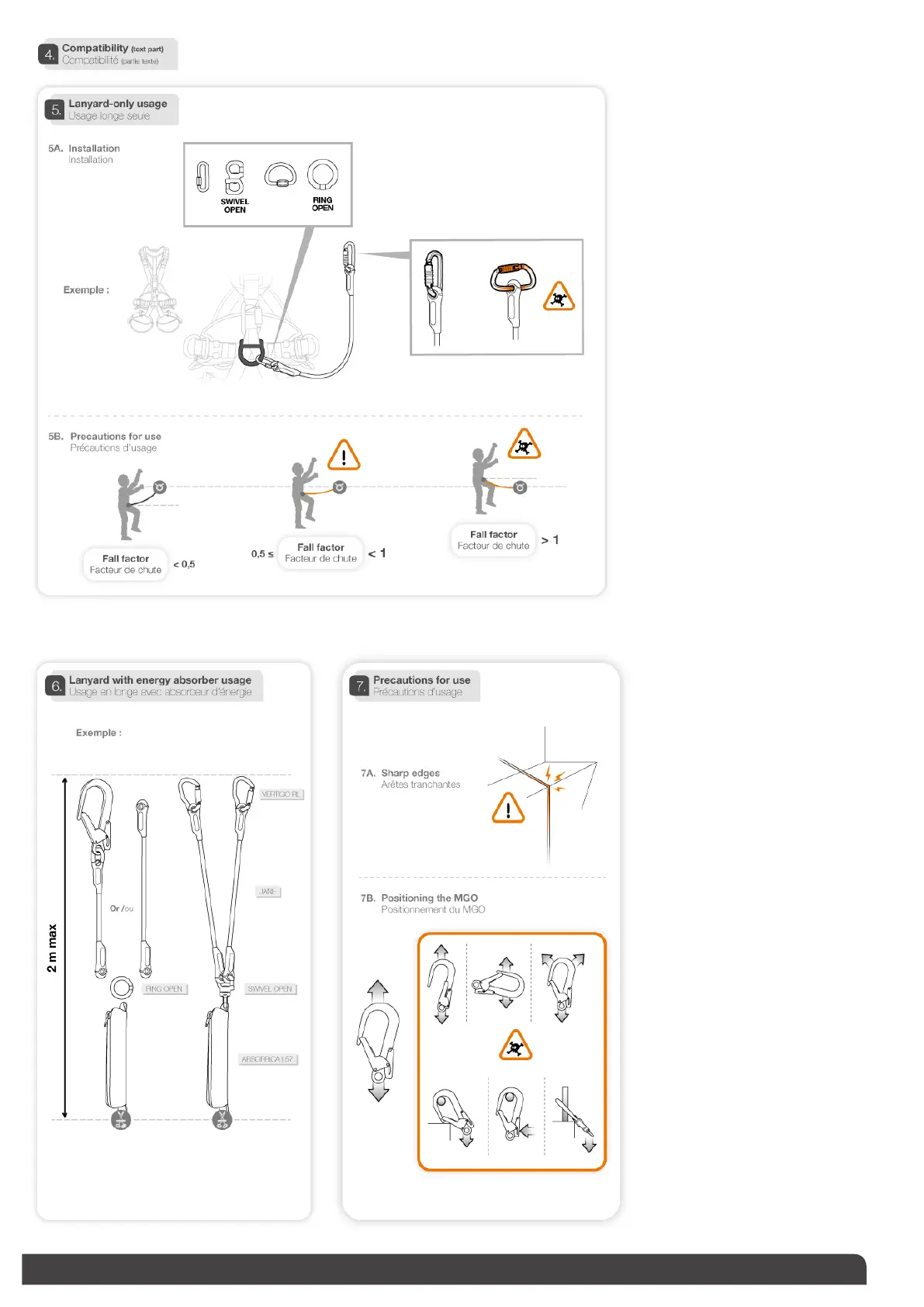 Petzl Jane - Usage Scenarios and Precautions; Compatibility and Lanyard-Only Use; Lanyard with Energy Absorber Use; Specific Usage Precautions