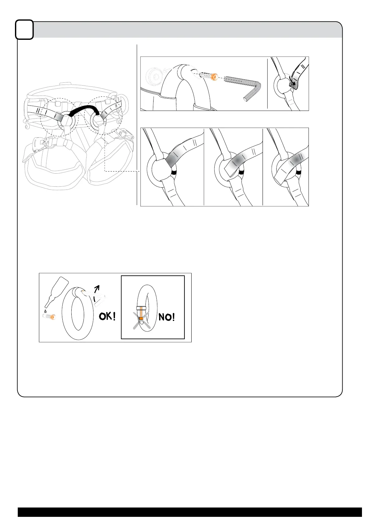 Verify that the 3 straps are correctly positioned in the gated rings (straps should