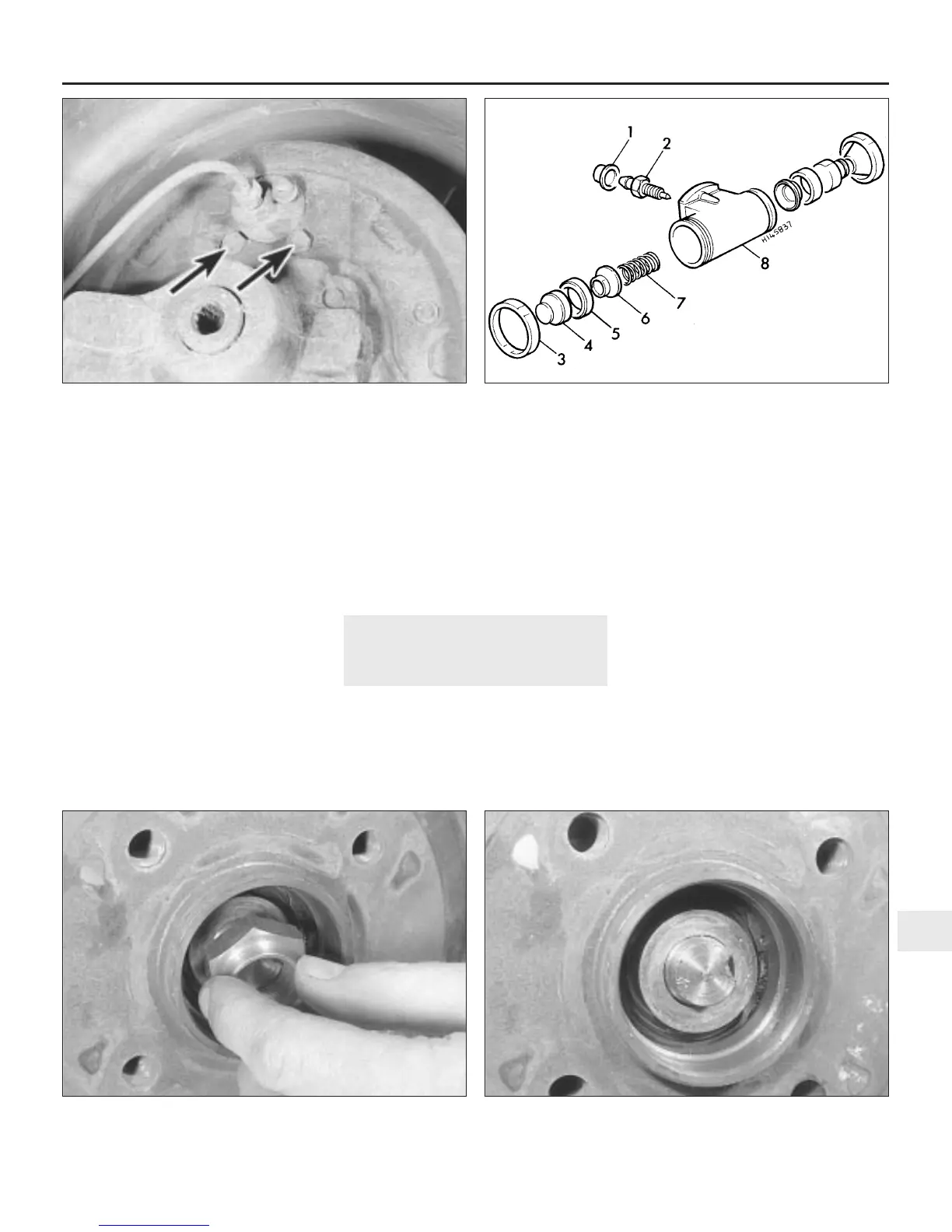 10.7 Rear wheel cylinder mounting bolts (arrowed) 10.9 Exploded view of a rear wheel cylinder