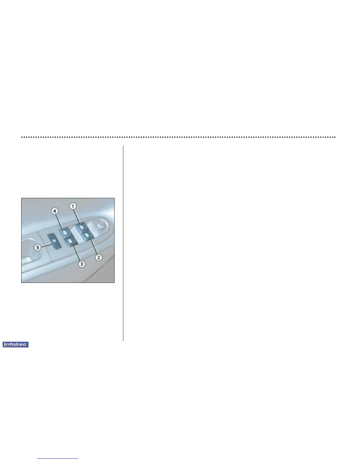 ☞ press or pull switch 1 gently. The window stops as soon as the switch is