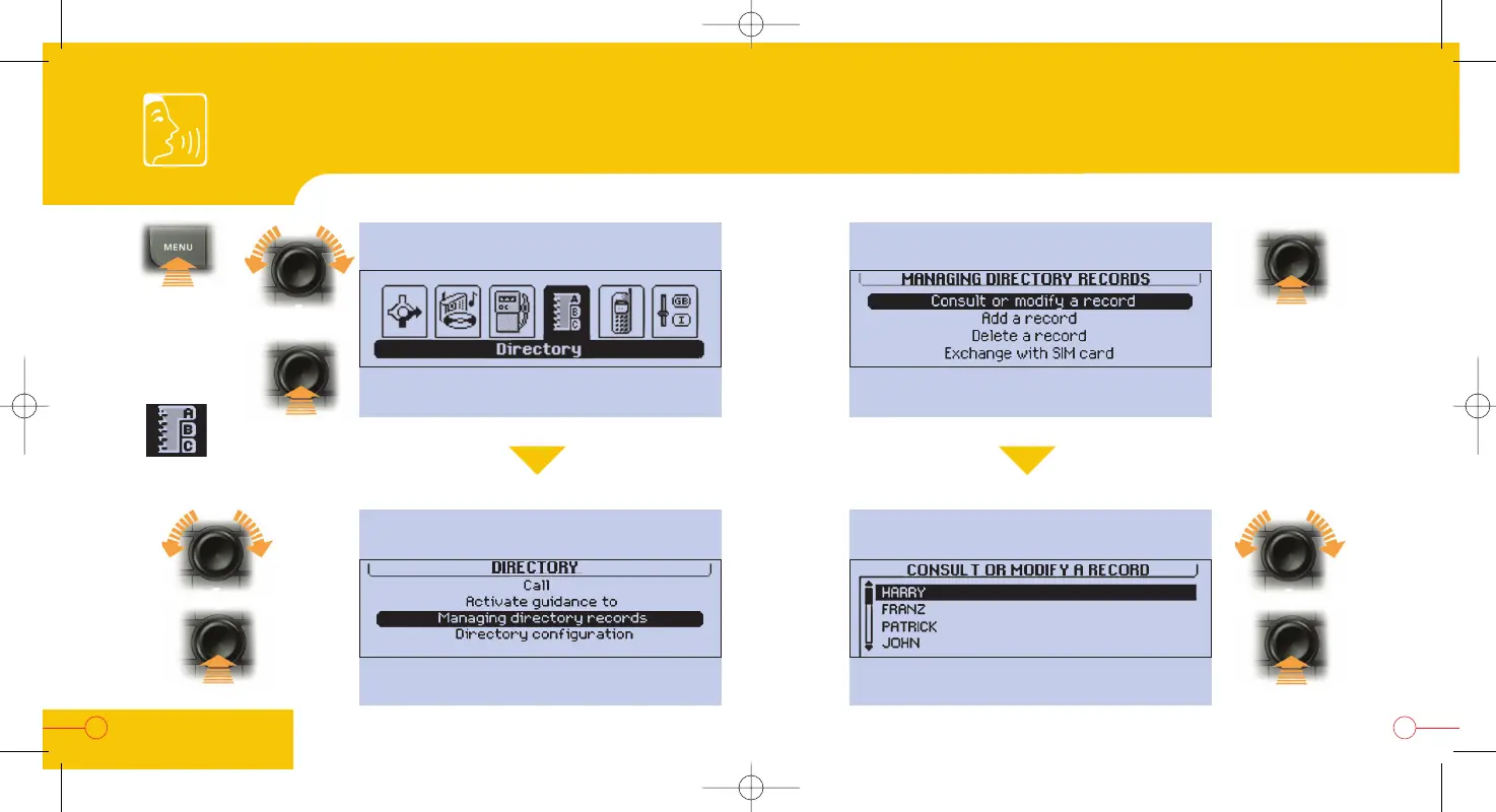 PEUGEOT RT3 - Recording Voice Tags for Directory; Accessing Directory Management; Managing Directory Records
