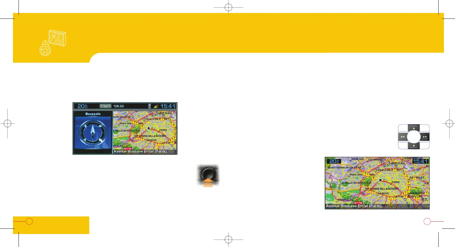 From the "Vehicle following on map" display, press the dial on