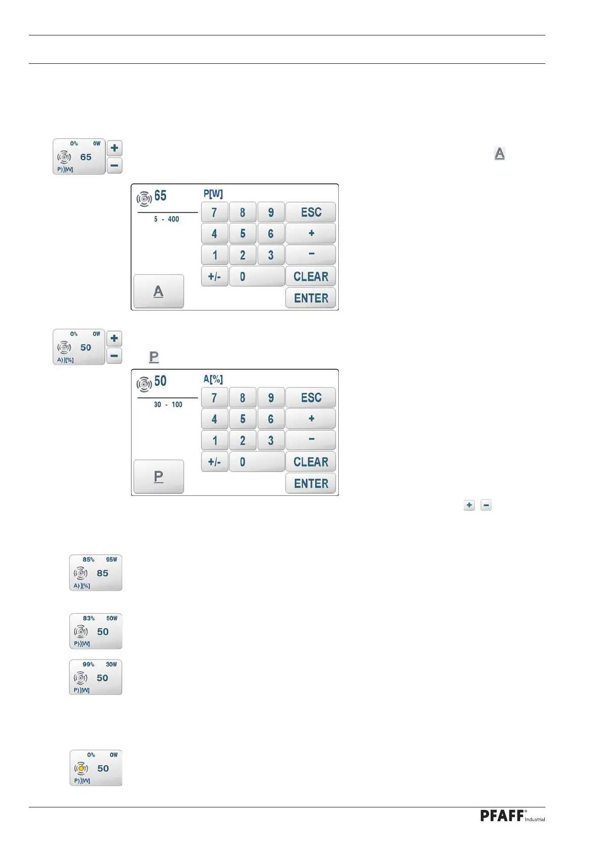 An ultrasonic amplitude of between 30% and 100% can be entered by pressing the