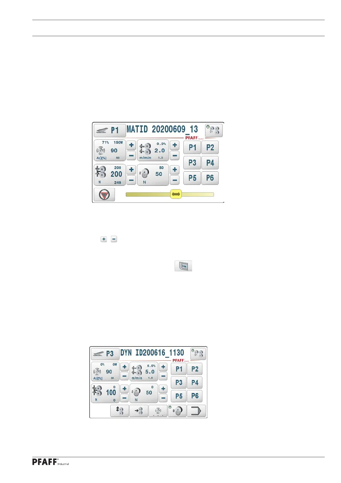 numbers.The pedal symbol next to data set number P1 shows that dynamic welding mode