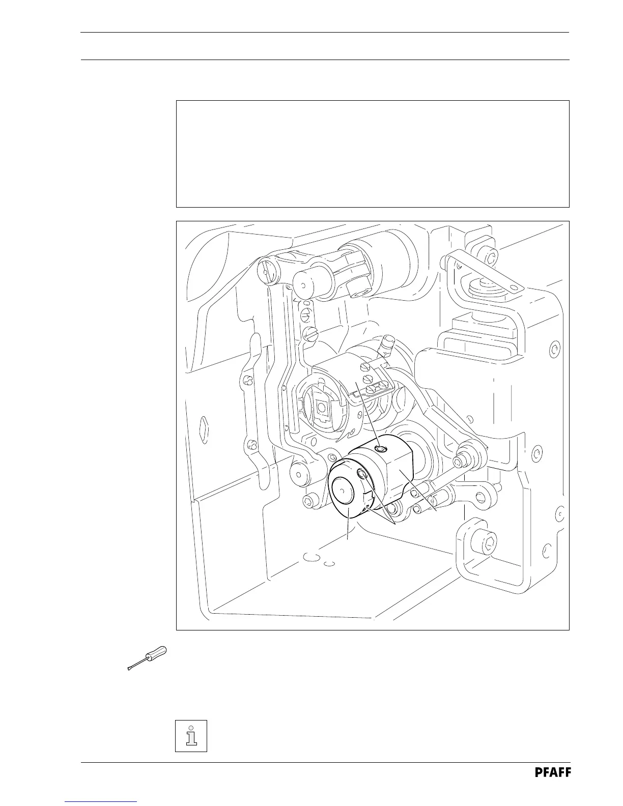 ● Set needle bar at t.d.c. and adjust control cam 3 (screw 4) according to Requirement.